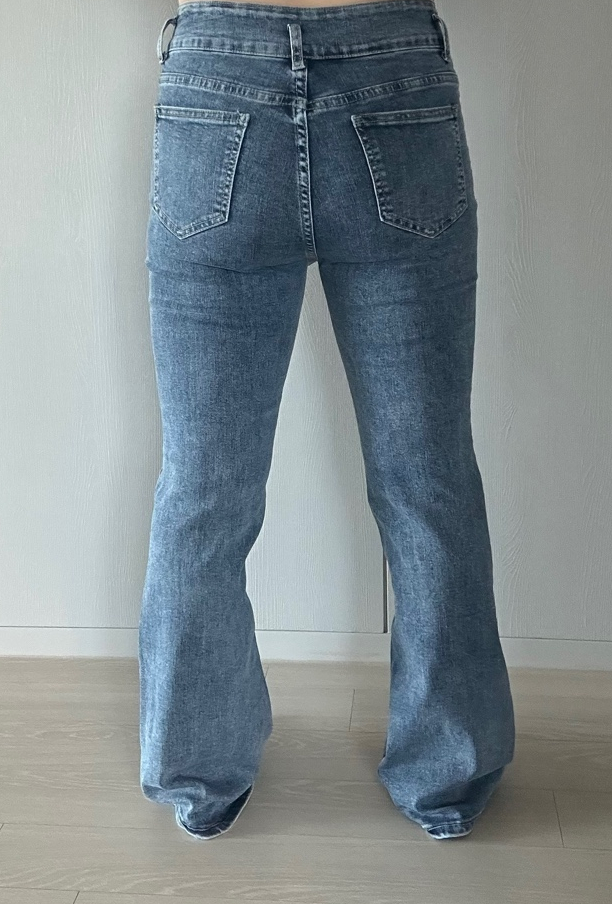 저 바지가 허벅지가 붙으면서 떨어지는 부츠컷인데