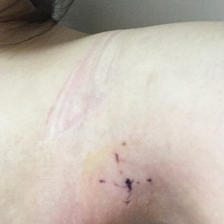 팔꿈치랑 어깨쪽에 1cm정도씩 째서 흉터 보이는건 담달에 경과 보고 한달 반쯤 있다가 흉터레이져 치료를 또 해준데