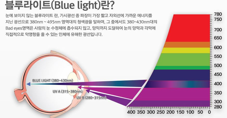 수술을 받기 전에 라섹수술을 먼저 했던 지인이 수술을 하고 나서 컴퓨터를 할 때 모니터에서 방출되는 블루라이트를 차단해주는 도수없는 안경을 미리 구입해두는 것이 좋다고 하여 주변 안경점에서 구입해두었다. 모니터에서 방출되는 빛 중 파란색 빛은 사람 눈에 매우 안 좋다고 한다.