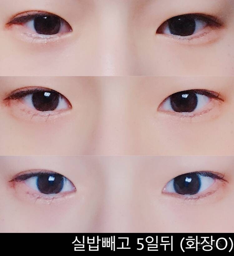 부기도 많이 빠지고 수술 부위도 잘 아물고 있는 것 같습니다. 옆에서 보면 신기하게 속눈썹이 남들처럼 아래를 향하고 있어요. 눈 모양도 살짝 바뀌었어요. 커졌다고 해야 될까... 어찌나 신기하던지 자꾸 바라보게 되네요. 시간이 지날수록 더 나아질 거라 믿습니다.