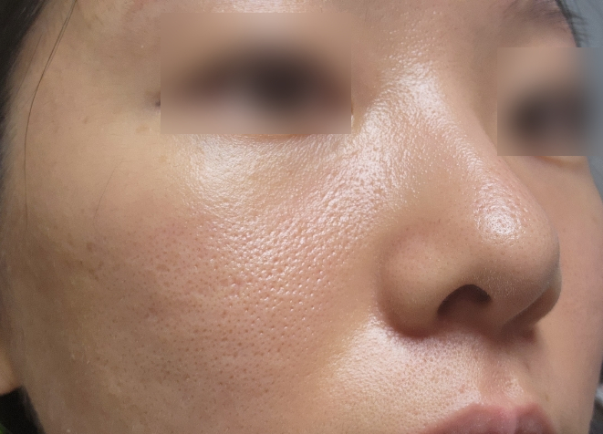 코옆으로 눈에 보일정도의 모공이 좀 있는편이고 여드름흉터자국도 있어요 그리고 전체적으로 피부가 매끈한 느낌이없고 흉터땜시 얼룩덜룩 울퉁불퉁한 느낌이라 얼굴전체 레가토2 시술을 받