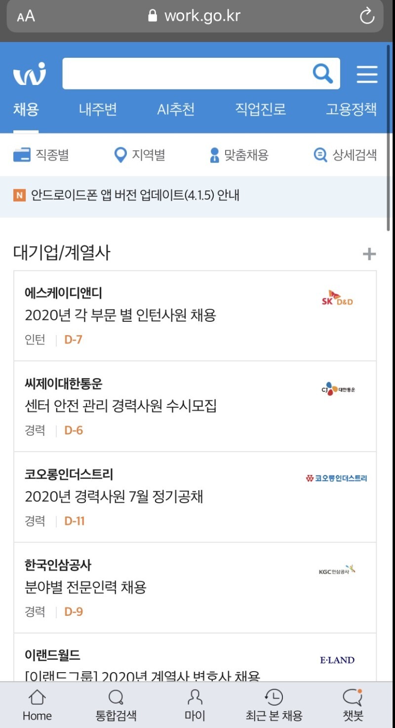 구직신청 찾아서 눌러서 자신이 원하시는 임의 직장을