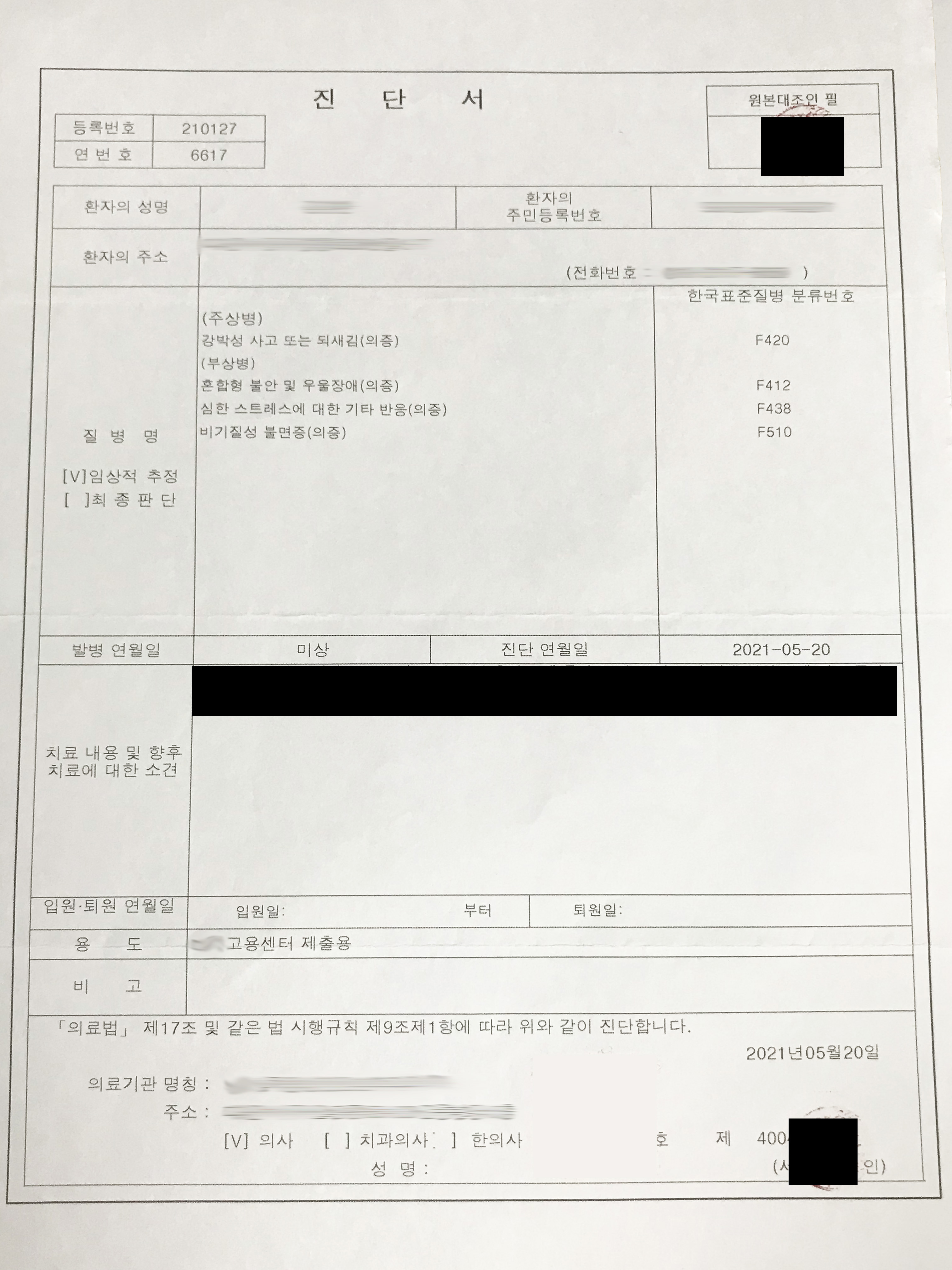 1. 질병진단서(정신과 작성)