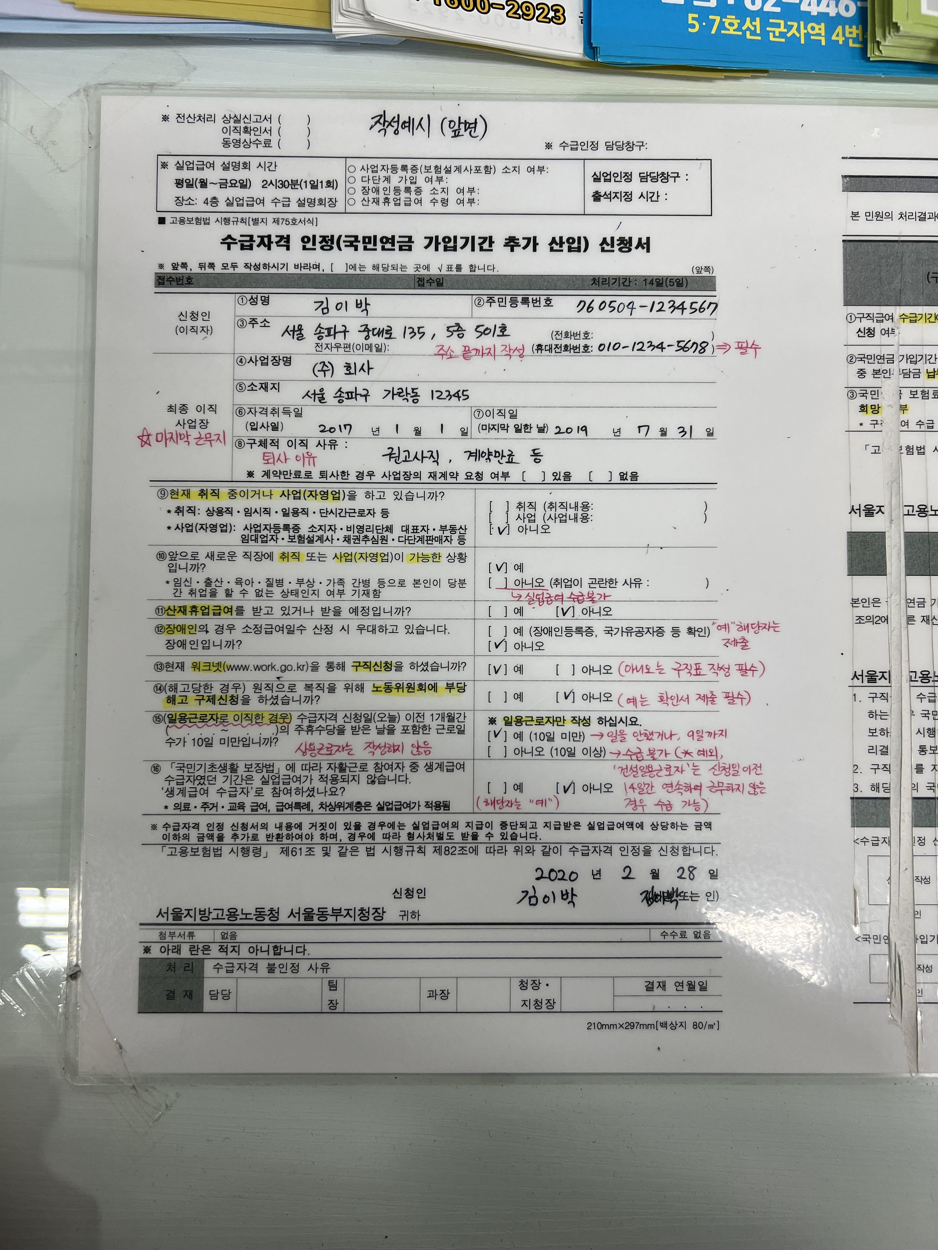 후 '수급자격 인정 신청서'를 작성하면 끝이다!