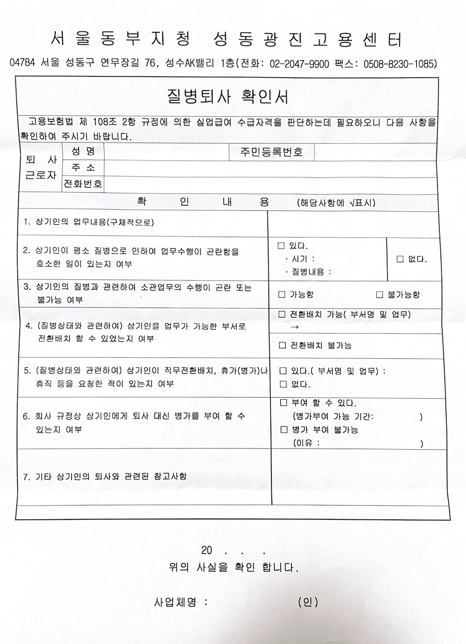 그래서 1,2번 서류 즉, 진단서 및 사업주 확인서는 먼저 발급받은 걸 갖고 있으면 된다.