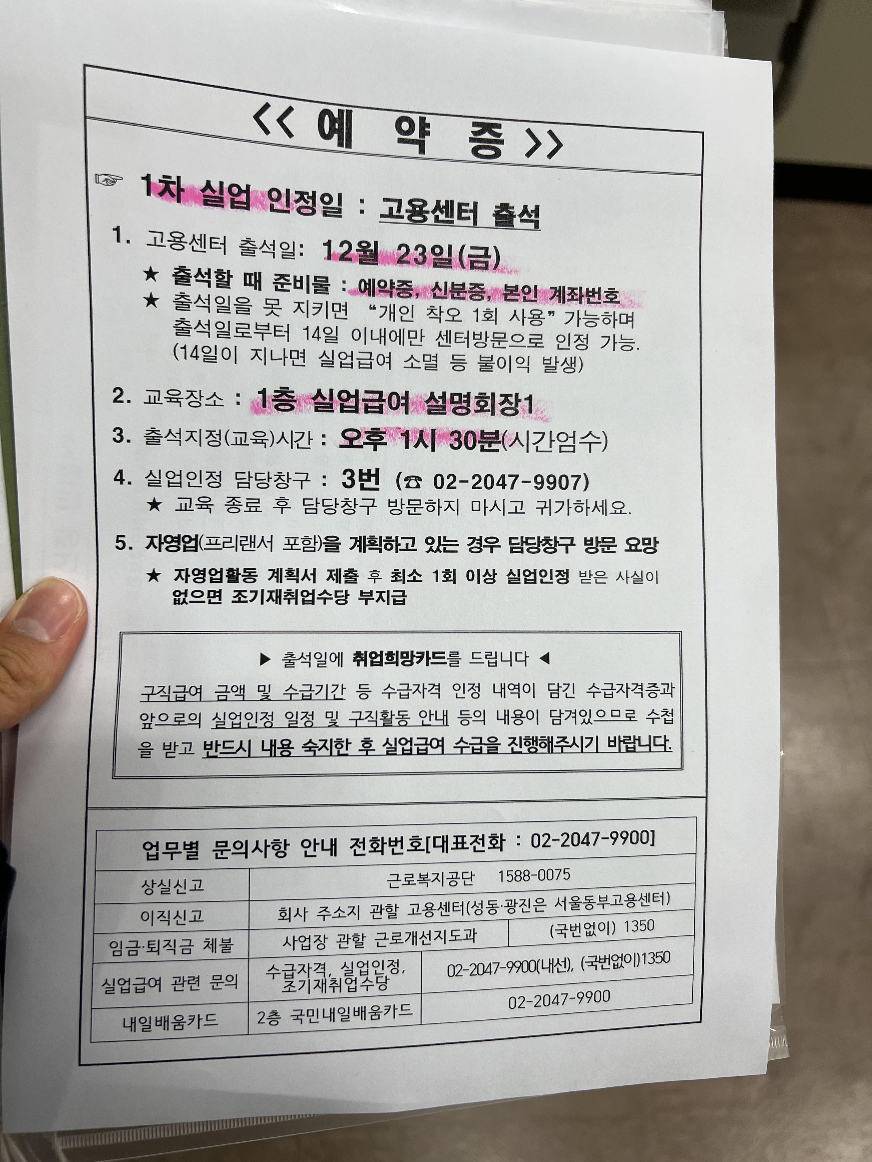 실업 인정일 예약증을 받을 수 있다.
